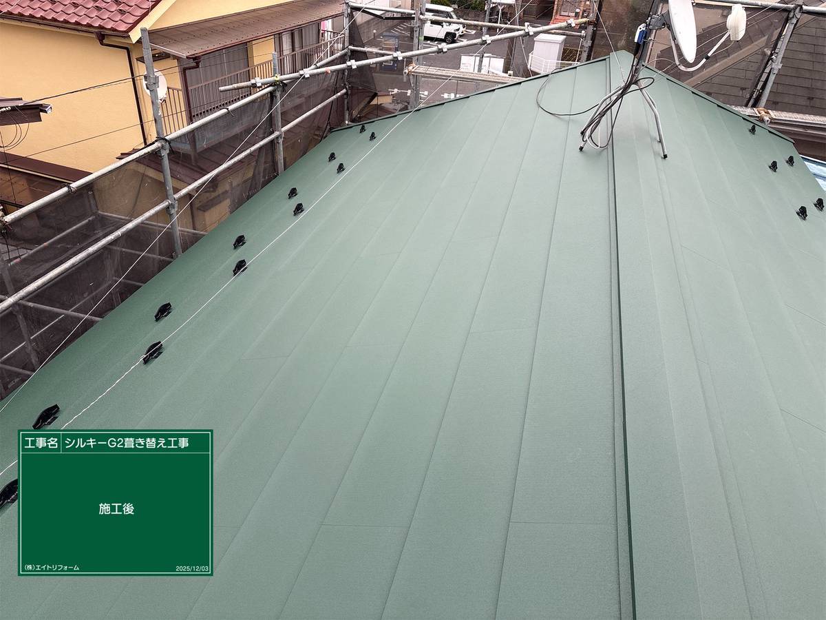 屋根・外壁が劣化することで表面に水が付着しやすくなり、コケや汚れを引き寄せている状態です。