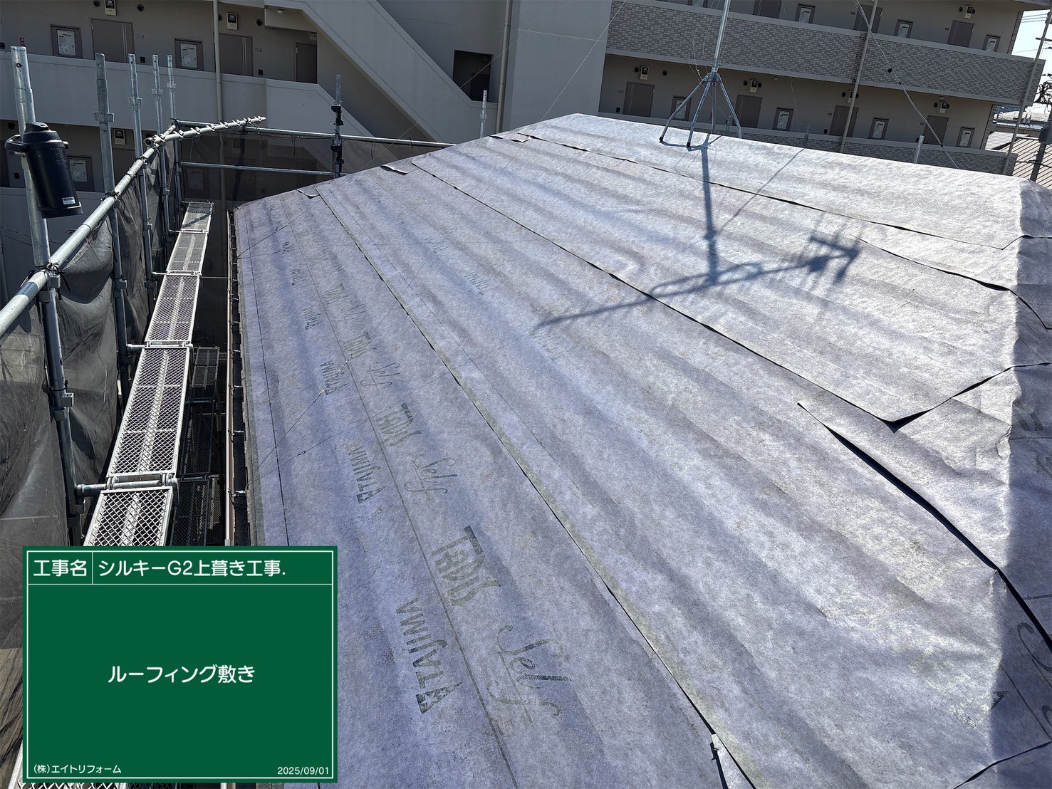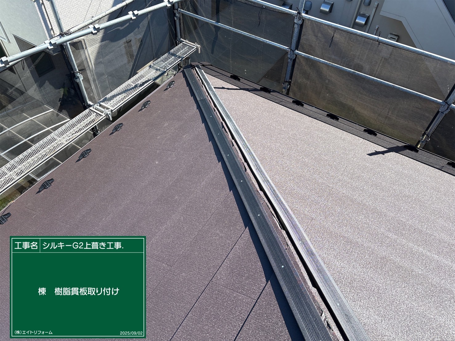 屋根カバー工法です 太陽光パネル設置予定の為、雪止めを一列設置してます👌