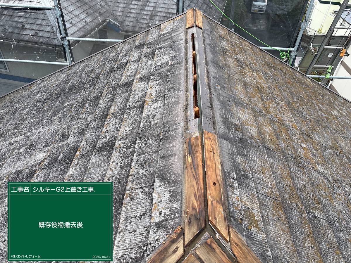 カバー工法 既存屋根材が今まで頑張つてくれました💪 カバー工法なのでご予算も◎